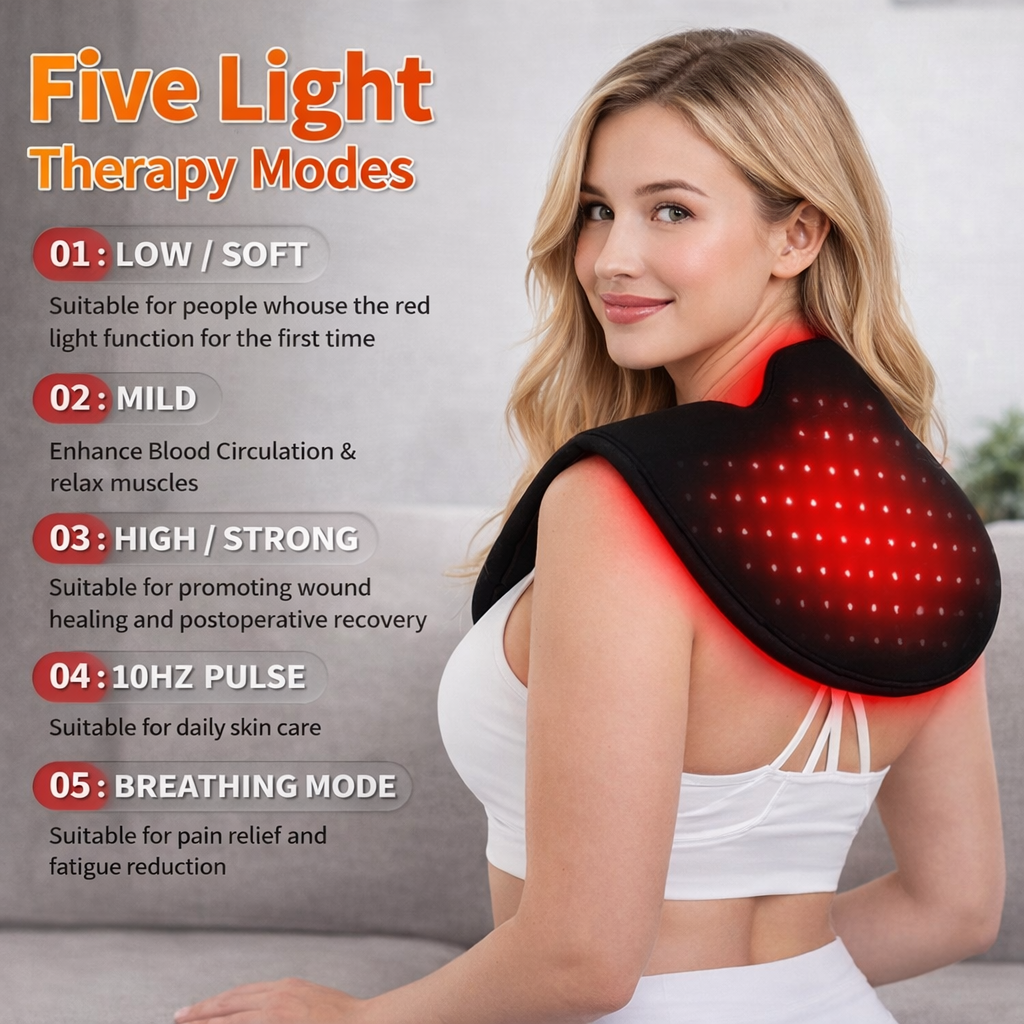 Dual-wavelength light (660nm + 850nm) — Combines red light and near-infrared light to support daily comfort and recovery without mechanical pressure.
