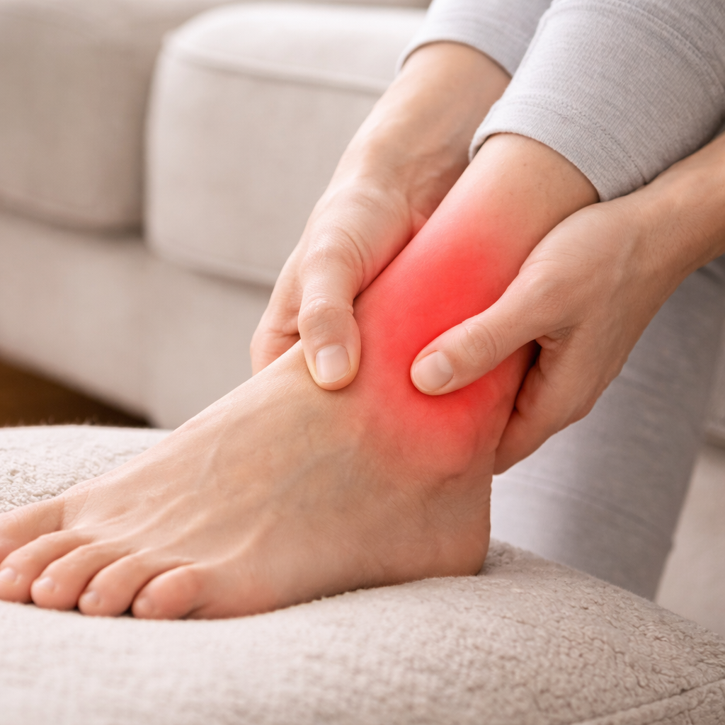 Red light therapy uses specific wavelengths of light (such as 660nm and 850nm) to support daily comfort by encouraging circulation, promoting relaxation, and helping ease temporary tension in the feet and lower legs.