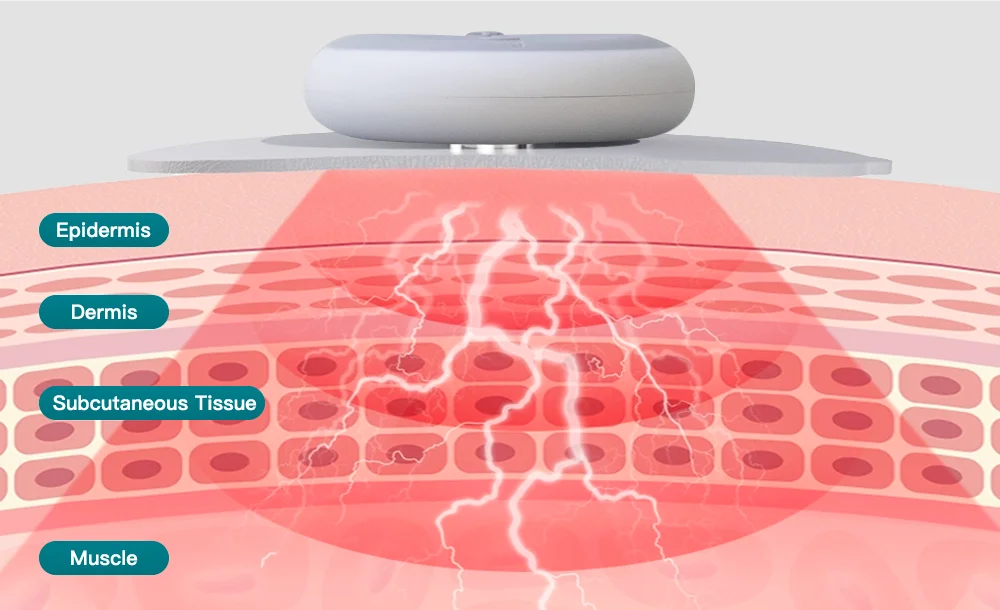 Peel off the protective film, attach the pad to the target area, then press and hold the power button for 2 seconds to activate.