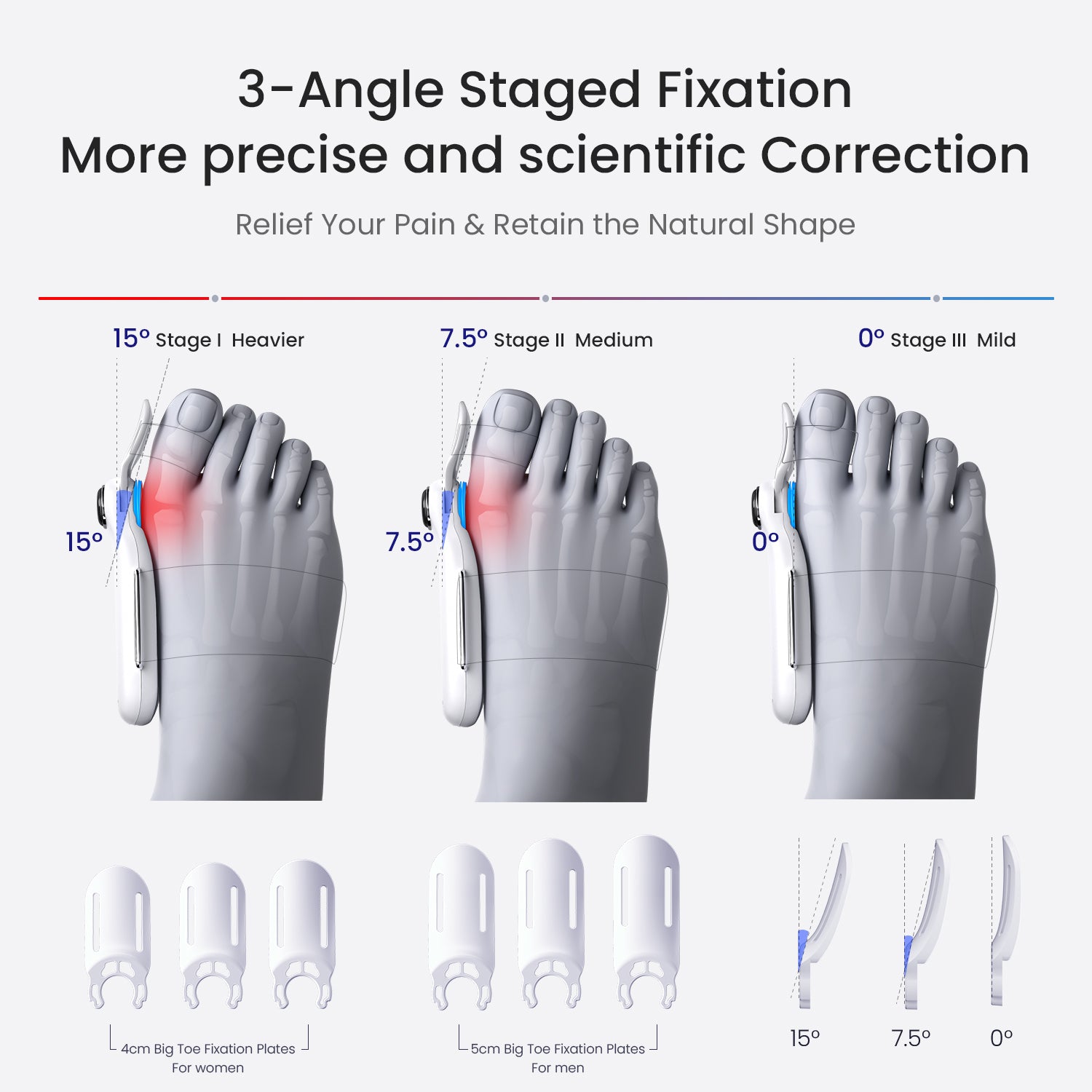 the progressive stages guide your toe step-by-step toward better alignment.