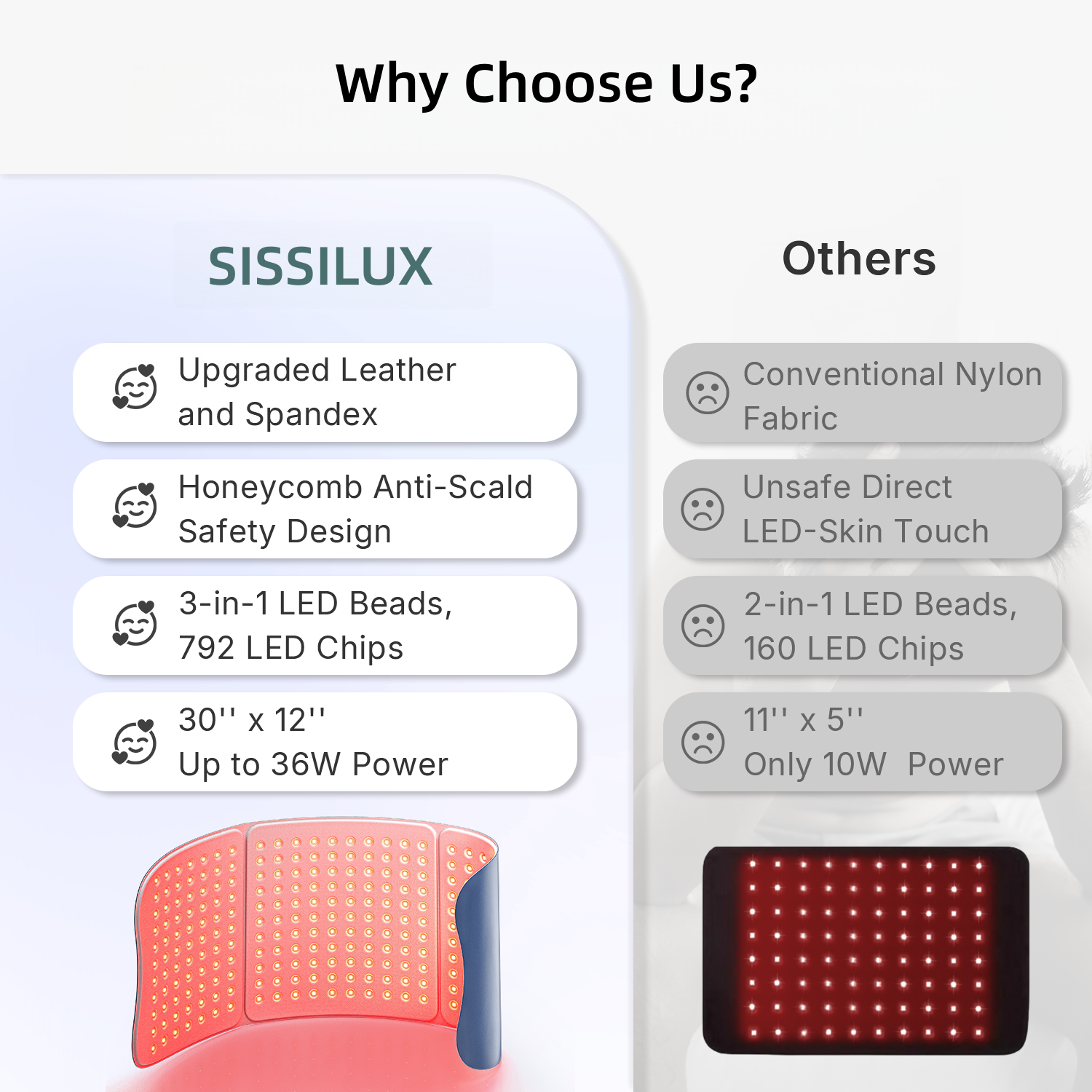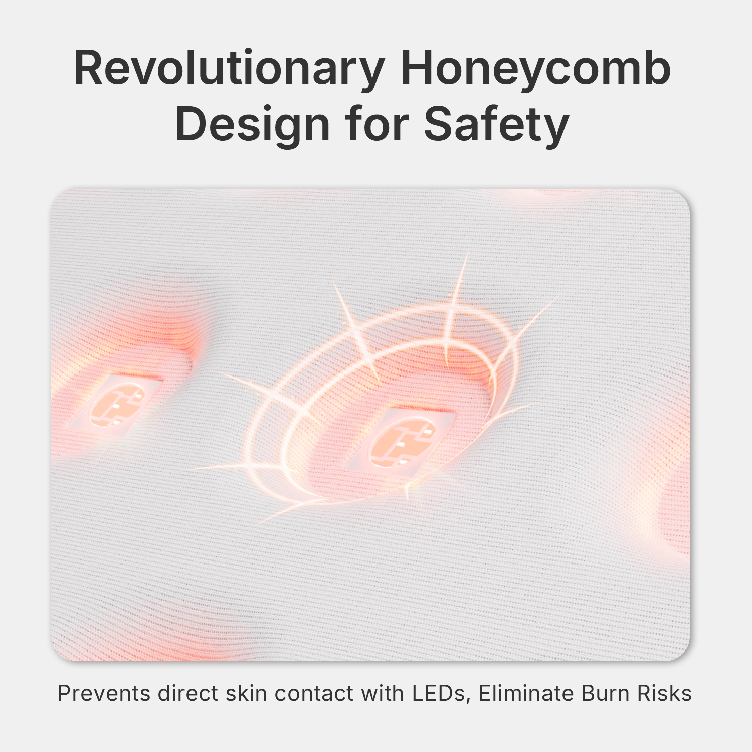 Our advanced honeycomb heat-shield layer keeps LEDs separated from your skin, preventing hot spots and eliminating any risk of overheating.